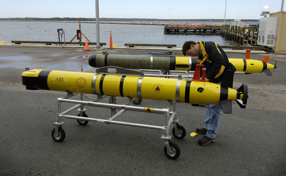 Steve Morrissette from the University of Texas at Austin, Applied Research Laboratory (ARL), performs a final check on a REMUS 600 with the Integrated Precision Underwater Mapping (iPUMA) package during AUVfest 2008. Since 1997, ONR has sponsored AUVfests to expose both the defense and scientific communities to technical advances and common applications in AUV technology. (U.S. Navy photograph by John F. Williams - 5/17/2008)