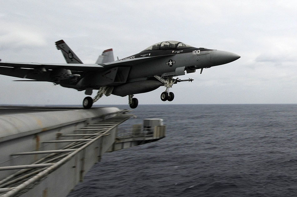 NORTHERN PHILIPPINE SEA (March 1, 2010) An F/A-18F Super Hornet assigned to the Black Aces of Strike Fighter Squadron (VFA) 41 launches from the aircraft carrier USS Nimitz (CVN 68). The Nimitz Carrier Strike Group is conducting operations in the U.S. 7th Fleet area of responsibility. (U.S. Navy photo by Mass Communication Specialist 2nd Class John Philip Wagner Jr./Released)