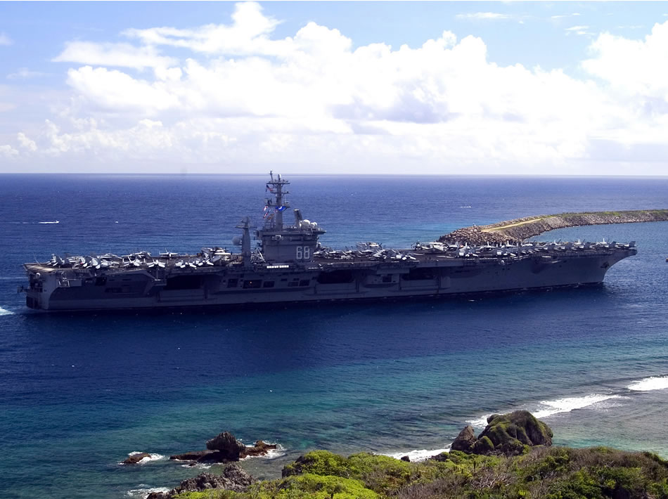 06/18/05 - The nuclear-powered aircraft carrier USS Nimitz (CVN 68) underway near Orote Point, which marks the entrance to Apra Harbor, Guam, on June 18, 2005. The Nimitz Carrier Strike Group is visiting Naval base Guam for a scheduled port visit. Nimitz is currently on a regularly scheduled deployment in support of the war on terror. (U.S. Navy photo by Photographer's Mae 2nd Class Mark Allen Leonesio)