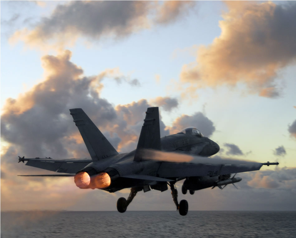 Pacific Ocean (Oct. 13, 2006) � An F/A-18C Hornet assigned to the �Red Devils� of Marine Fighter Attack Squadron Two Three Two (VMFA-232) launches from the flight deck aboard the nuclear-powered aircraft carrier USS Nimitz (CVN 68). Nimitz is currently underway conducting Tailored Ships Training Availability (TSTA) off the coast of southern California. U.S. Navy photo by Mass Communication Specialist 3rd Class Roland Franklin