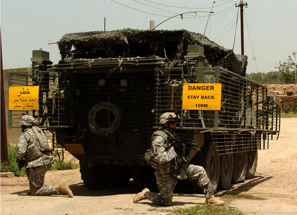 Soldiers with the latest Stryker brigade to arrive in Iraq pull security in the Taji area, May 15. The Soldiers are with the 4th Stryker Brigade Combat Team, 2nd Infantry Division, from Fort Lewis, Wash. The 4-2 SBCT is the fourth of five brigades to arrive in Iraq as part of the President's "surge" of troops into the Baghdad area. The brigade assumed official responsibility for the area north of Baghdad including parts of deadly Diyala province, May 15.
