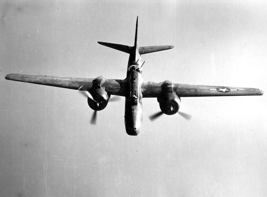 Douglas A-20 begins a dive bombing run. From Air Force Historical Research Agency - Capt. Joseph J. Merhar Jr. Collection